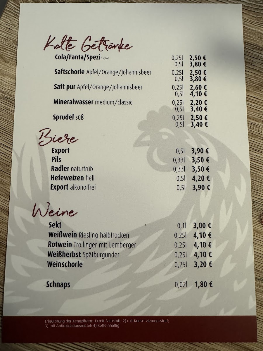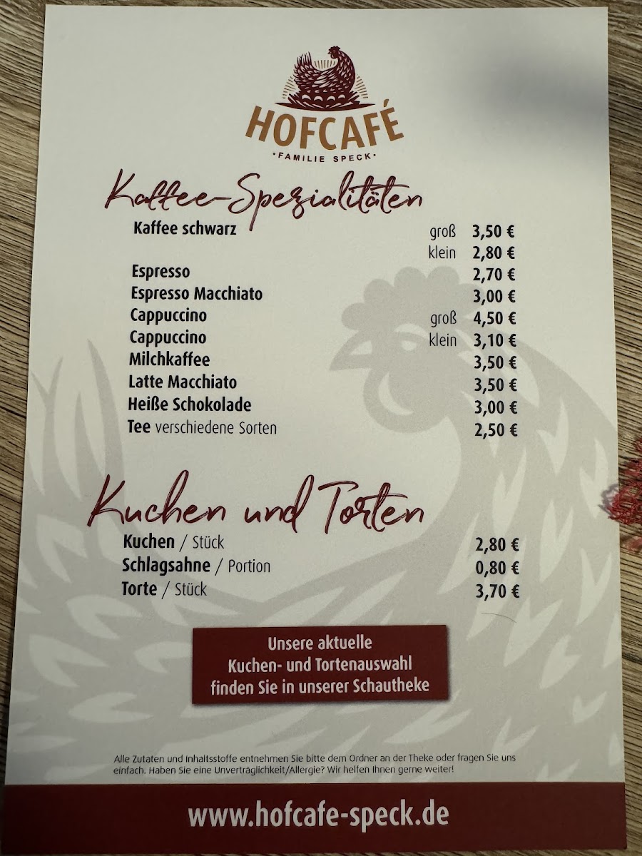 - Cakes and Desserts: A selection of cakes such as Schwarzwälder Kirschtorte and Käsekuchen, complemented by an ice cream menu.